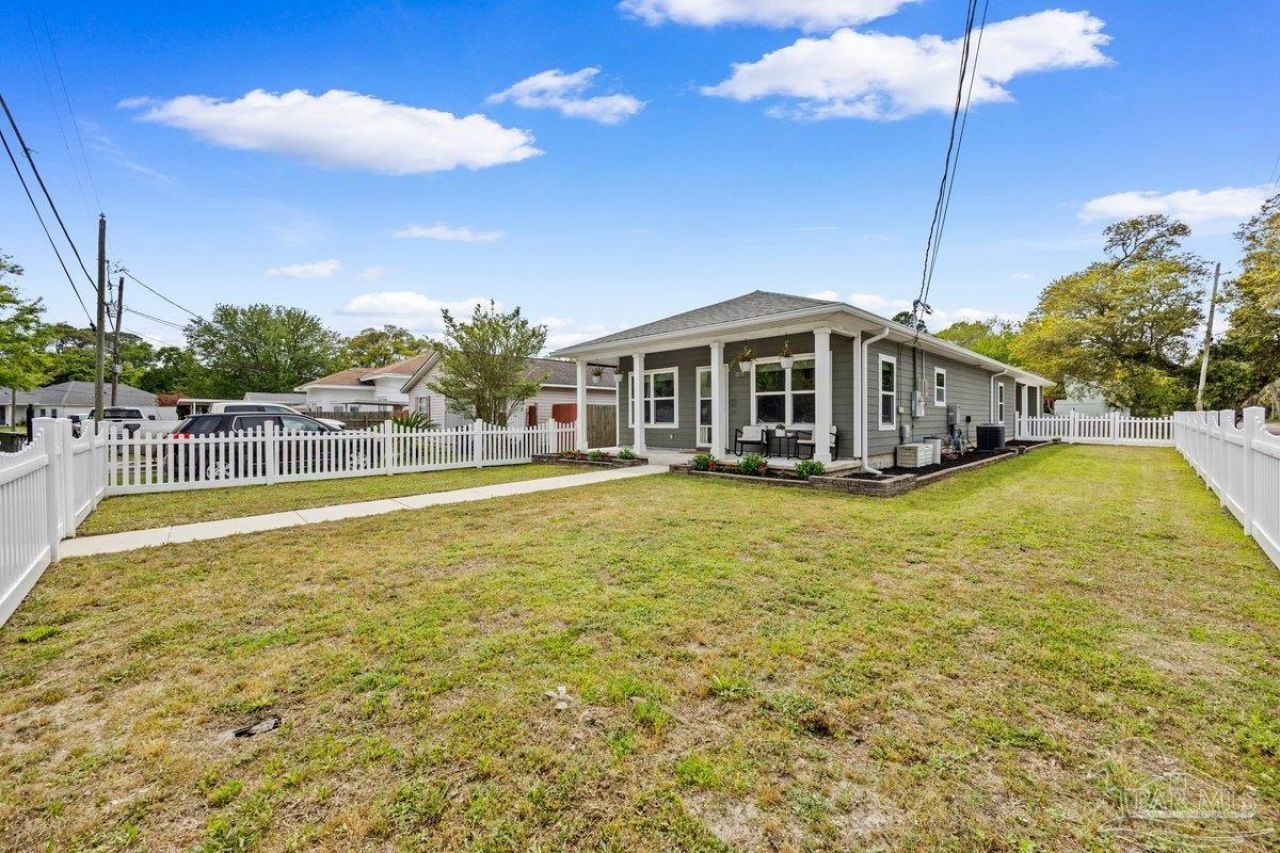 Adorable 2BR/2BA cottage-style home built in 2017 with approx. 1,300 SF and no HOA. This one-story home offers a functional open floor plan with 9' ceilings, abundant natural light, fireplace, and luxury vinyl flooring throughout. Conveniently located just minutes from Naval Air Station Pensacola. The kitchen features white shaker cabinets, granite countertops, peninsula with bar seating, custom tile backsplash, large walk-in pantry, and black stainless steel appliances. Guest bedroom has convenient access to hall bath with granite vanity, jetted soaking tub, efficiency toilet, and tile surround. Primary suite includes walk-in closet and en-suite bath with granite vanity, efficiency toilet, and tiled shower with frameless glass enclosure. Spacious laundry/mud room provides additional storage. Situated on a corner lot with low-maintenance vinyl fencing, outdoor storage building with electricity, and owned solar panels (no balance). The average electric bill per month is only $35. Ideal for primary residence, second home, or short-/long-term rental investment. Schedule your showing today.